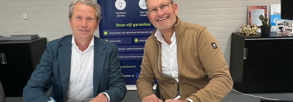 Voorzitter Konnekt’os Hans de Kinderen & eigenaar Ruud Danklof van Blankers Schoon ondertekenen het foundercontract.